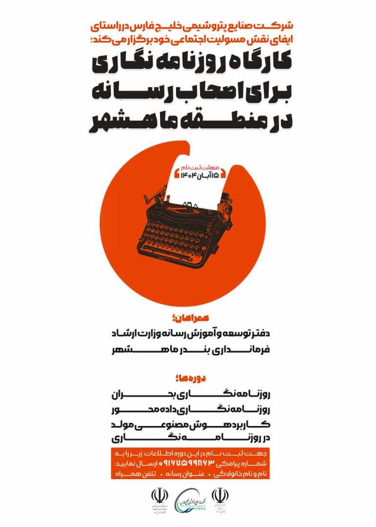 در راستای ایفای نقش مسئولیت اجتماعی، شرکت صنایع پتروشیمی خلیج فارس با همکاری دفتر توسعه و آموزش رسانه وزارت فرهنگ و ارشاد اسلامی و فرمانداری بندر ماهشهر، کارگاه آموزشی روزنامهنگاری را ویژه اصحاب رسانه در منطقه ماهشهر برگزار میکند.